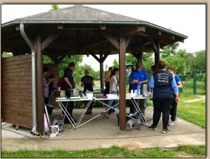 Gesponsert wurde das Buffet von allen "Flinken Pfoten", welche in liebevoller Arbeit wieder einmal ihre Koch-, Back-, Schnippel- und Einkaufkünste aufzeigt hatten. Die Auswahl war groß, angefangen von einer deftigen Suppe, über Fleischbeilagen, Würstchen, Salate und Obst bis hin zu leckeren Dessers, Kuchen und Kaffee.