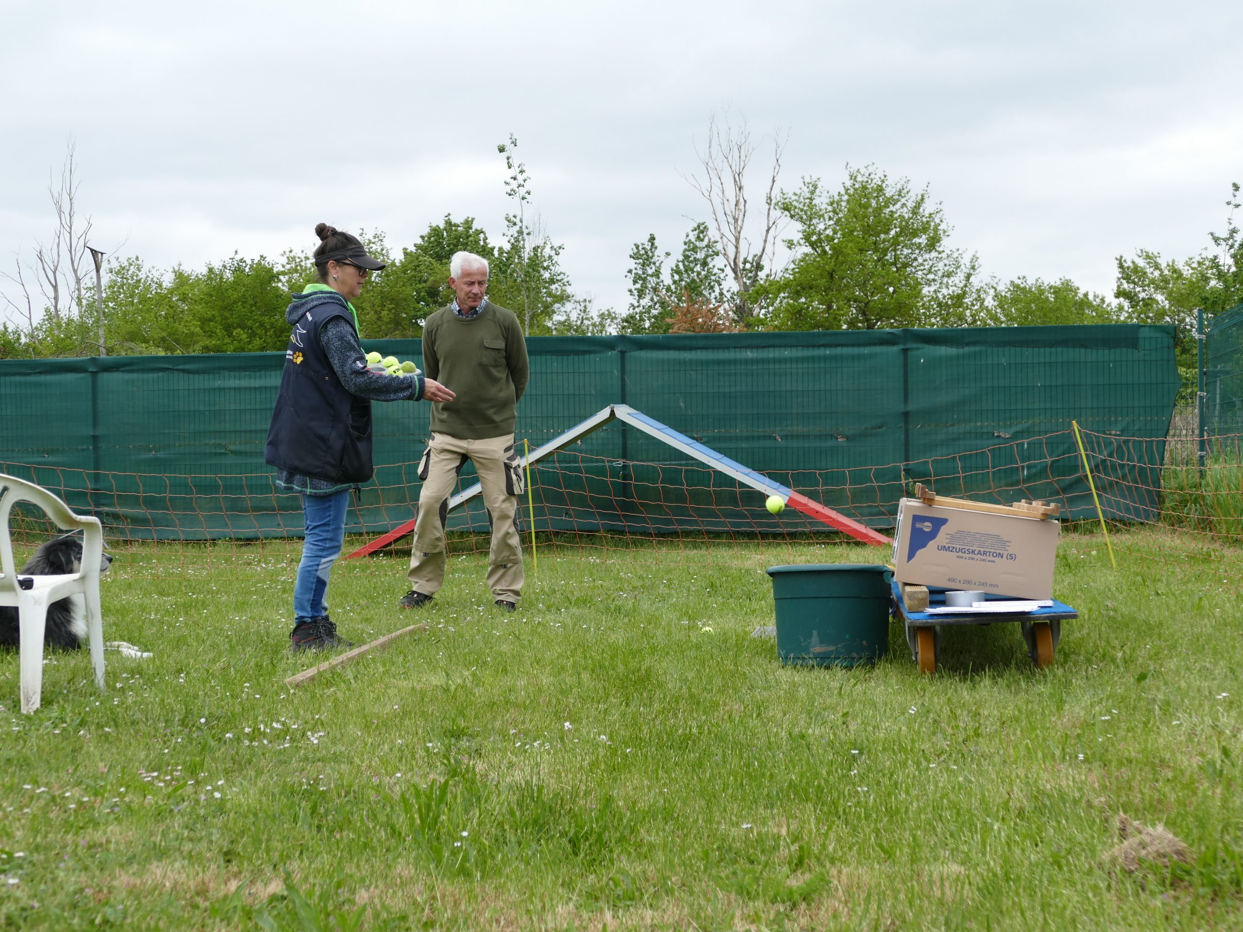 Zu guter Letzt haben unsere Zweibeiner dann noch mit Bällen um sich geworfen mit dem Ziel, dass der ein oder andere Ball doch mal in einem Eimer landet. Na ja, das ist nicht jedem so geglückt, war aber lustig anzuschauen. Wir Hundis hatten da Pause, obwohl ich schon ganz gerne mal ein paar Bälle gefangen hätte.